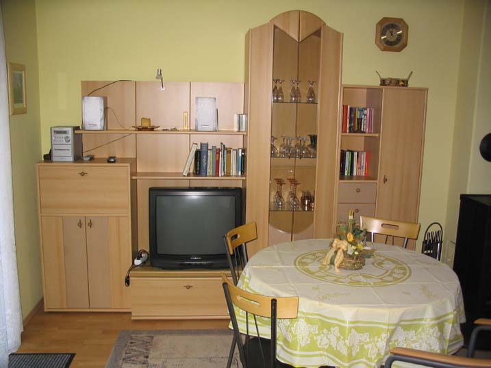 Schrankwand mit Fernseher, Musikanlage und Eßecke