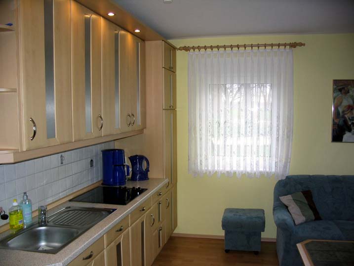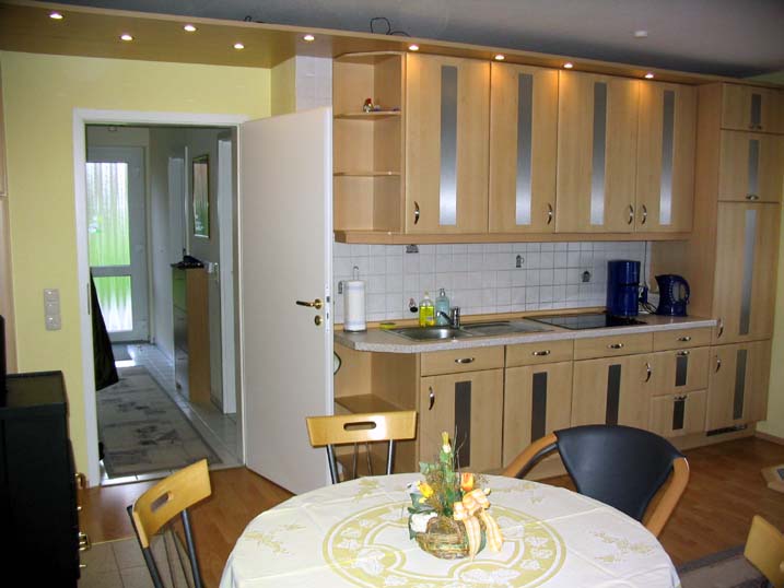 Flurtür, Küchenzeile und Fenster zur Westseite